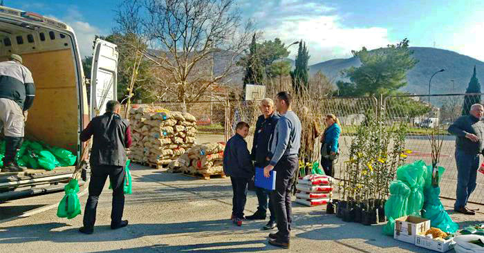 Ovim trebinjskim proizvođačima, među kojima je i 14 porodica lošeg imovinskog stanja, danas je podijeljeno oko tri i po tone sjemenskog krompira, oko dvije tone đubriva, oko 1.500 sadnica maslina, oraha, višnje, trešnje, lubenice, a stočari su podržani sa oko 100 kilograma lucerke i djeteline.