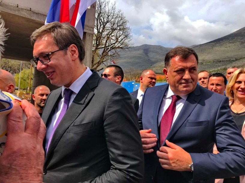 Predsjednici Srbije i Srpske, Aleksandar Vučić i Milorad Dodik obišli su danas radove na izgradnji vrtića “Srbija” koji finansira Vlada Srbije.