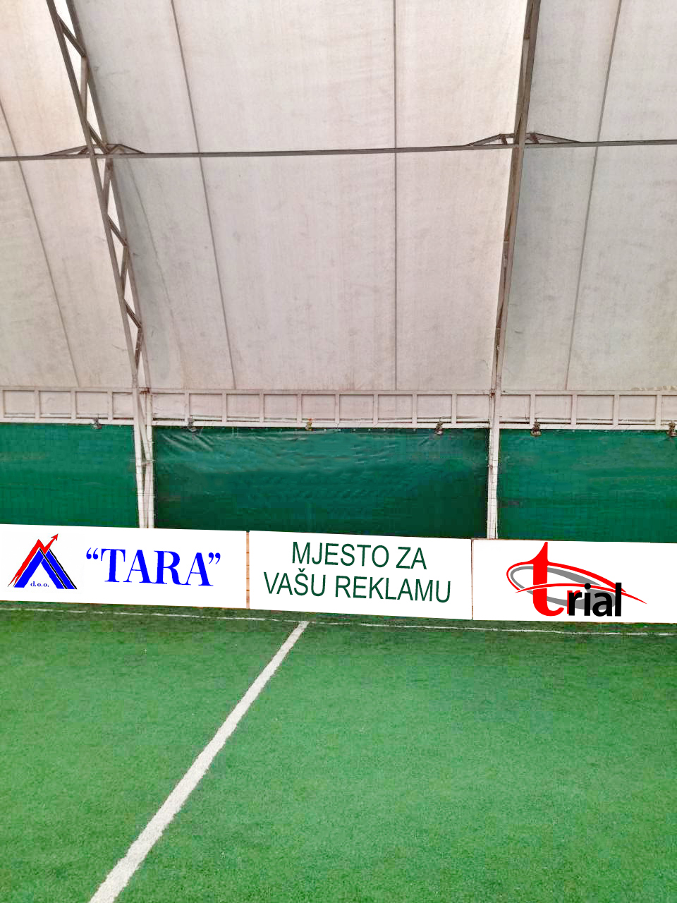 Ukoliko želite da se reklamirate na terenu u balon sali, mjesto za baner na ceeradnom platnu Vas čeka po vrlo pristupačnim uslovima. Više info na: 065 589 324 i 065 970 614.