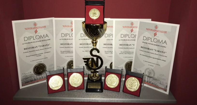 Na 51. Međunarodnom sajmu truizma u Novom Sadu, renomirani restoran TARANA, jedan od nekoliko najpoznatijih BH ugostiteljskih objekata, sinonim za najbolju hranu, piće i uslugu u regionu, postao je šampion sajma sa osvojenih pet Velikih zlatnih medalja i peharom koji je dobio na večeri šampiona za vrhunski kvalitet ugostiteljskih usluga i gastro ponude.