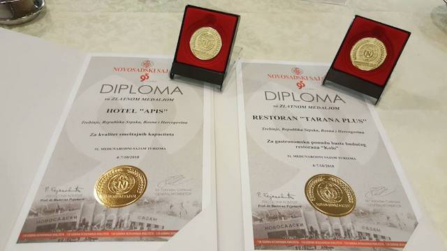 Na 51. Međunarodnom sajmu turizma u Novom Sadu Hotel Apis i Restoran Tarana plus nagrađeni su sa velikim zlatnim medaljama za kvalitet pružanja ugostiteljskih usluga i gastronomske ponude tradicionalnih jela.