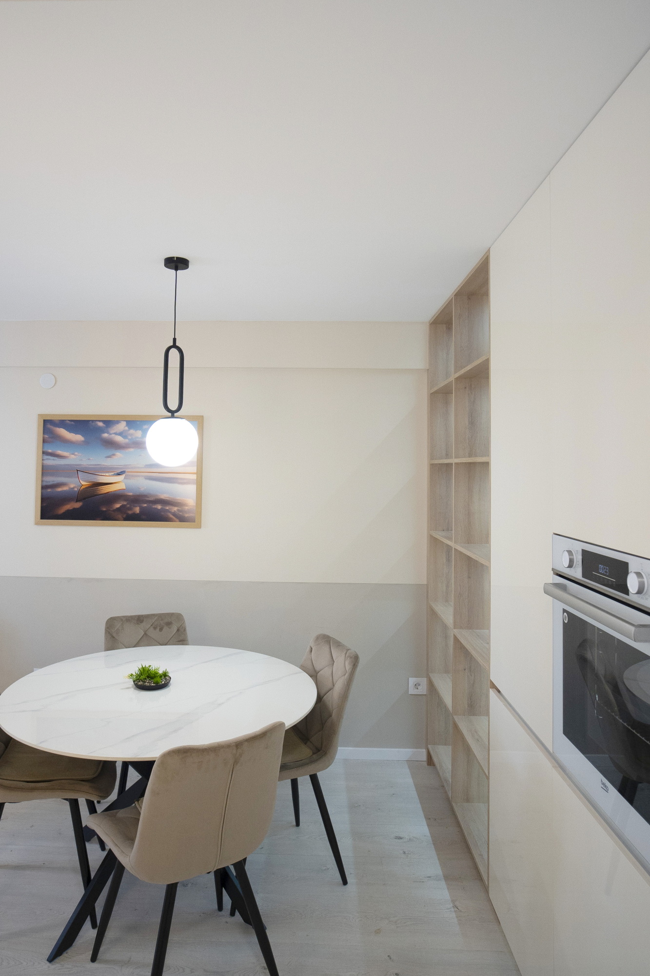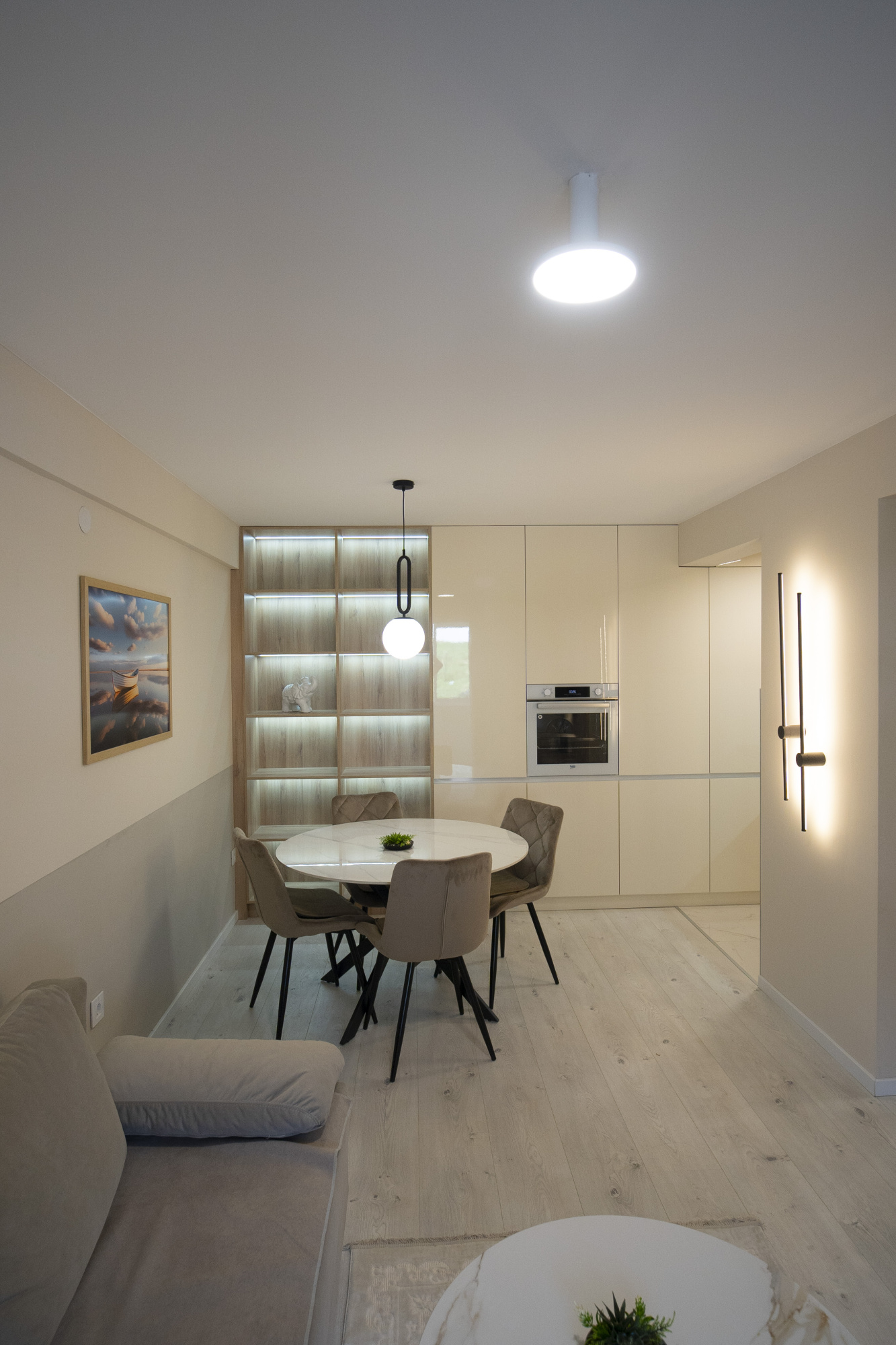 Prozračnim enterijerom, u kome preovladavaju svijetli tonovi, pažljivo birani detalji u modernom stilu, ovaj savršeni kutak za odmor, u potpunosti opravdava svoj naziv- Alba, odnosno svitanje.