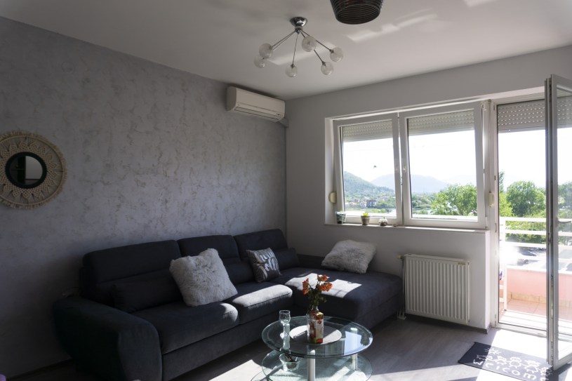 Apartman “Rajna” smješten je u centru Trebinja, u naselju Bregovi, na petom spratu stambene zgrade.