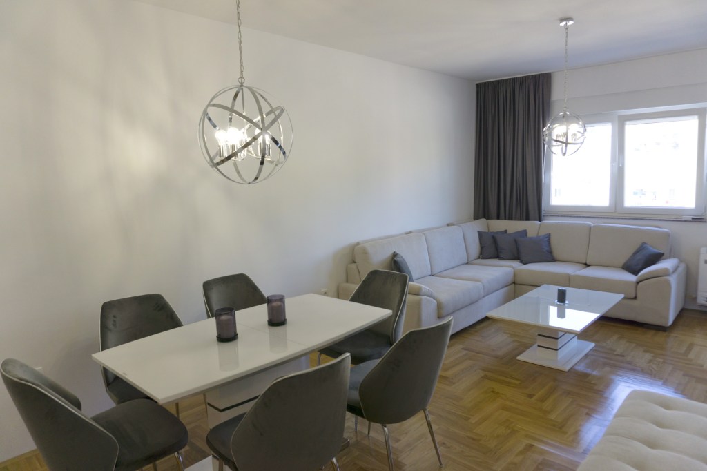 Apartman se nalazi u centru grada Trebinja, na atraktivnoj lokaciji u novoizgradjenom stambenom kompleksu. Moderno je opremljen, posjeduje besplatan wi-fi, klima uređaj, kablovsku, lcd TV… sušač za kosu, peglu… kompletno opremljenu kuhinju…