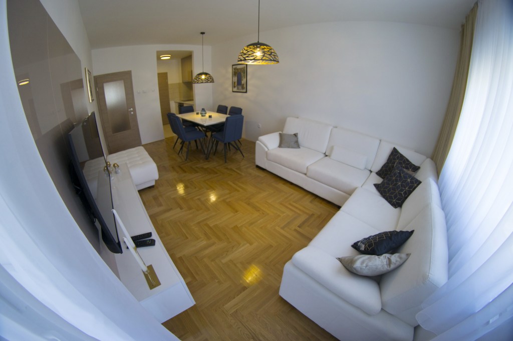 Svjetlost, prozračnost, predivan pogled sa prostrane terase, “ušuškane” i izdignute od gradske gužve, samo su dio razloga da izaberete Sunlight apartman.