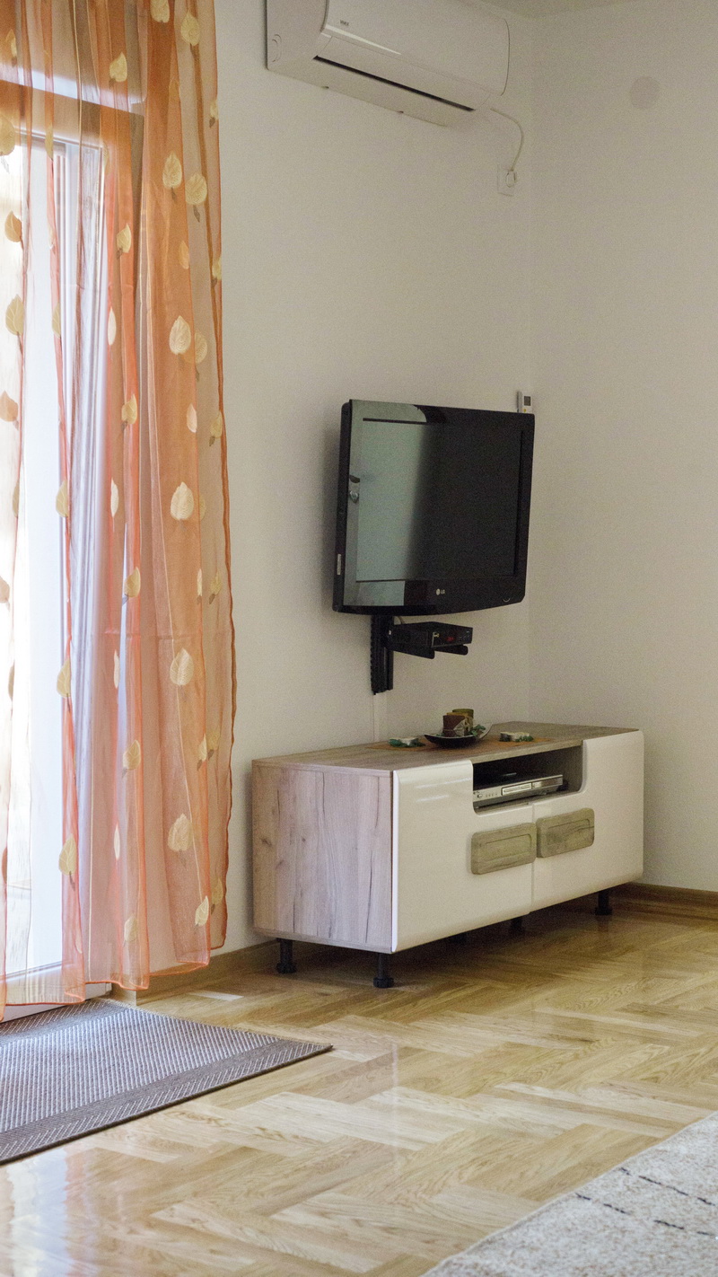 Apartman ima odličnu izolaciju pa mu je i prirodna temperatura jako prijatna. Posjeduje klima uređaj, TV, kablovsku, Wi-Fi…