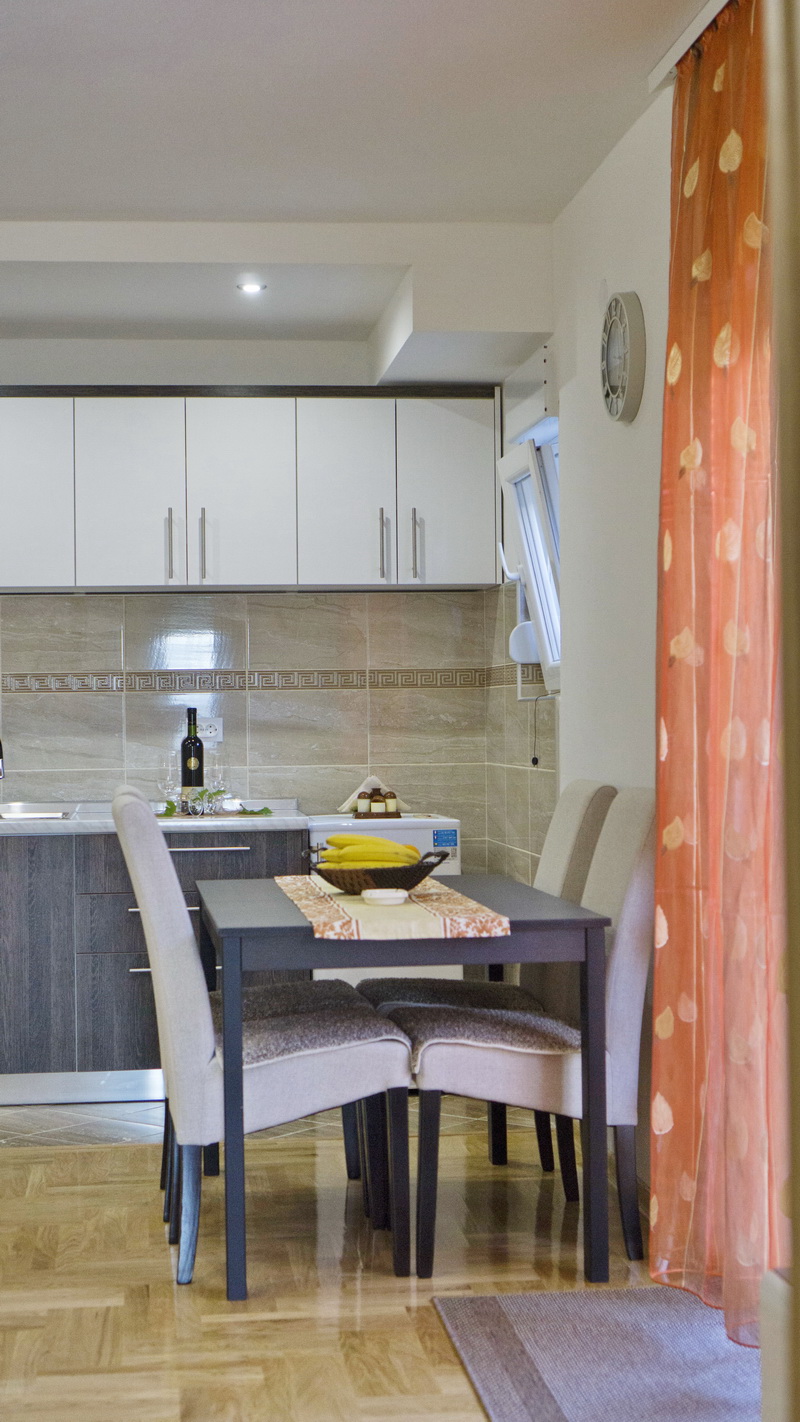 Apartman se nalazi u trebinjskom naselju Police i udaljen je od centra samo 7 minuta hoda. U prizemlju je i ima zaseban ulaz sa bočne strane kuće. Odlikuje ga jako prostrano, prelijepo dvorište prepuno zelenila. Namještaj i svi elementi su potpuno novi.