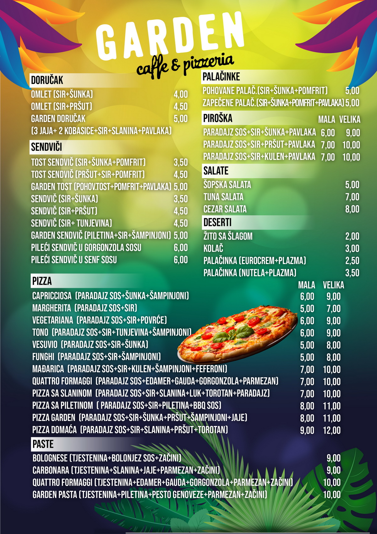 Pažljivo biran meni i kvalitetno pripremljena jela zadovoljiće i najzahtjevnije ljubitelje dobrog zalogaja. Sendviči, paste, pice, obrok salate, domaćinski doručak, lagana vitamisnka užina, samo su dio bogate ponude.