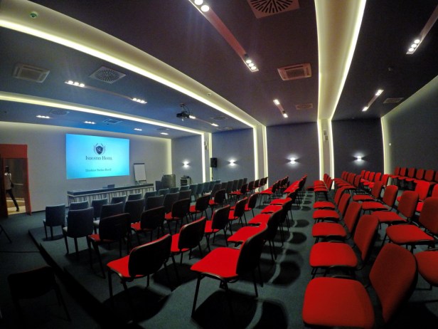 Konferencijska sala kapaciteta 90 mjesta, pogodna za održavanje seminara, prezentacija, predavanja… Sala je klimatizovana i opremljena bežičnim internetom i najmodernijom vizuelnom i tehničkom opremom koja garantuje visok stepen profesionalnosti.
