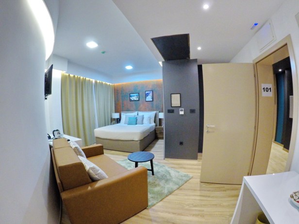 Kombinacijom betona i drveta učinjeno je da ambijent soba dobije što robusniji, industrijski izgled. Svaka soba posjeduje i flat screen TV, besplatan bežični internet, mini bar i sef.