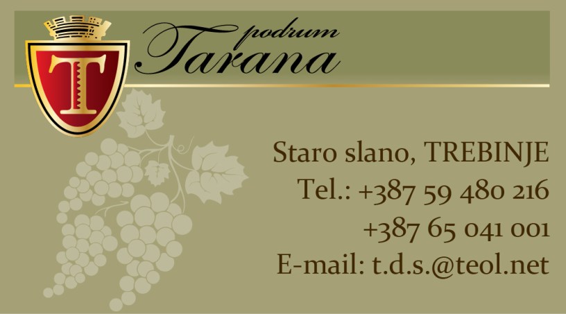 Crveno vino dobijeno kupažom tri sorte grožđa u omjerima poznatim isključivo porodici Tarana.